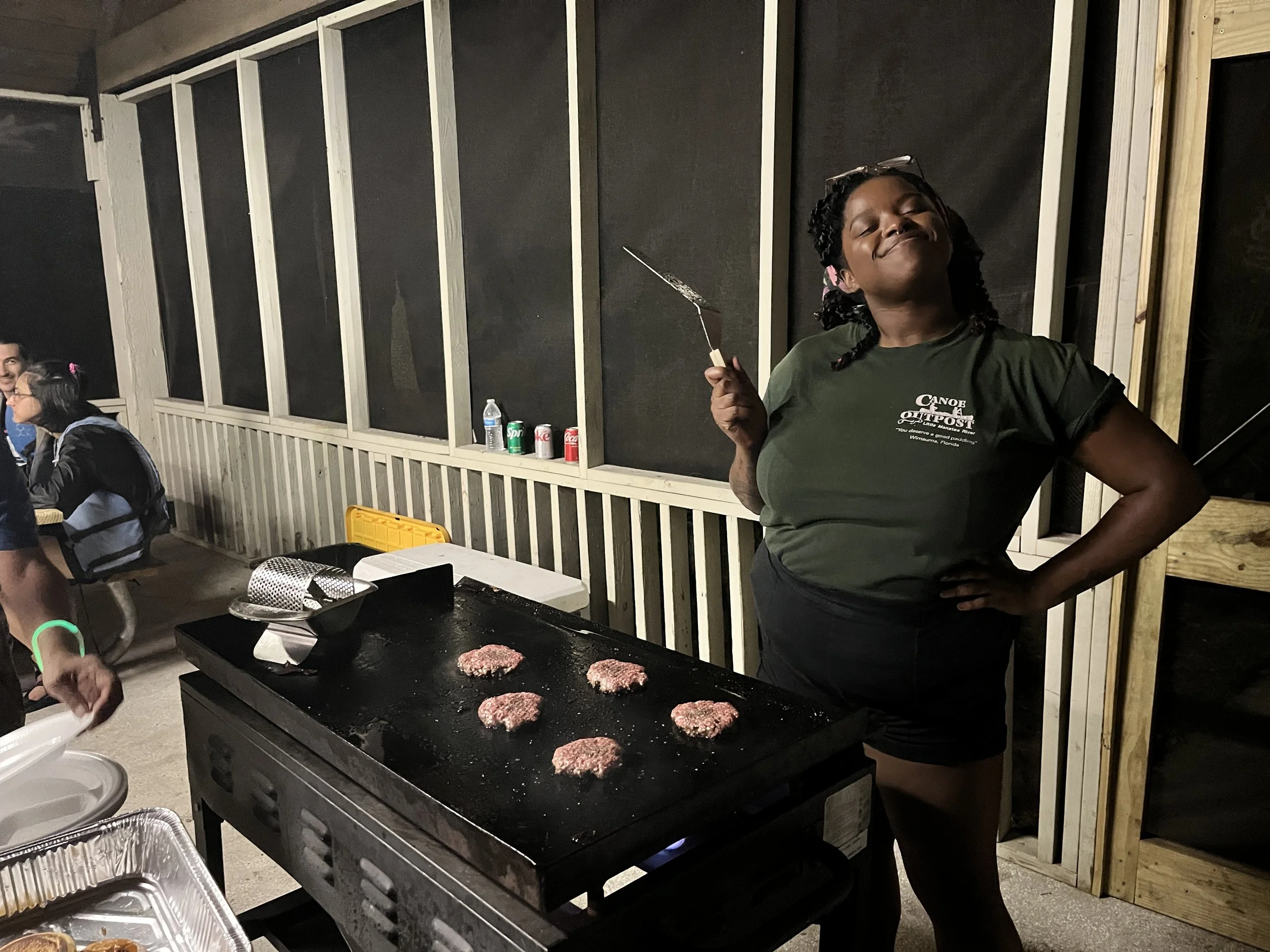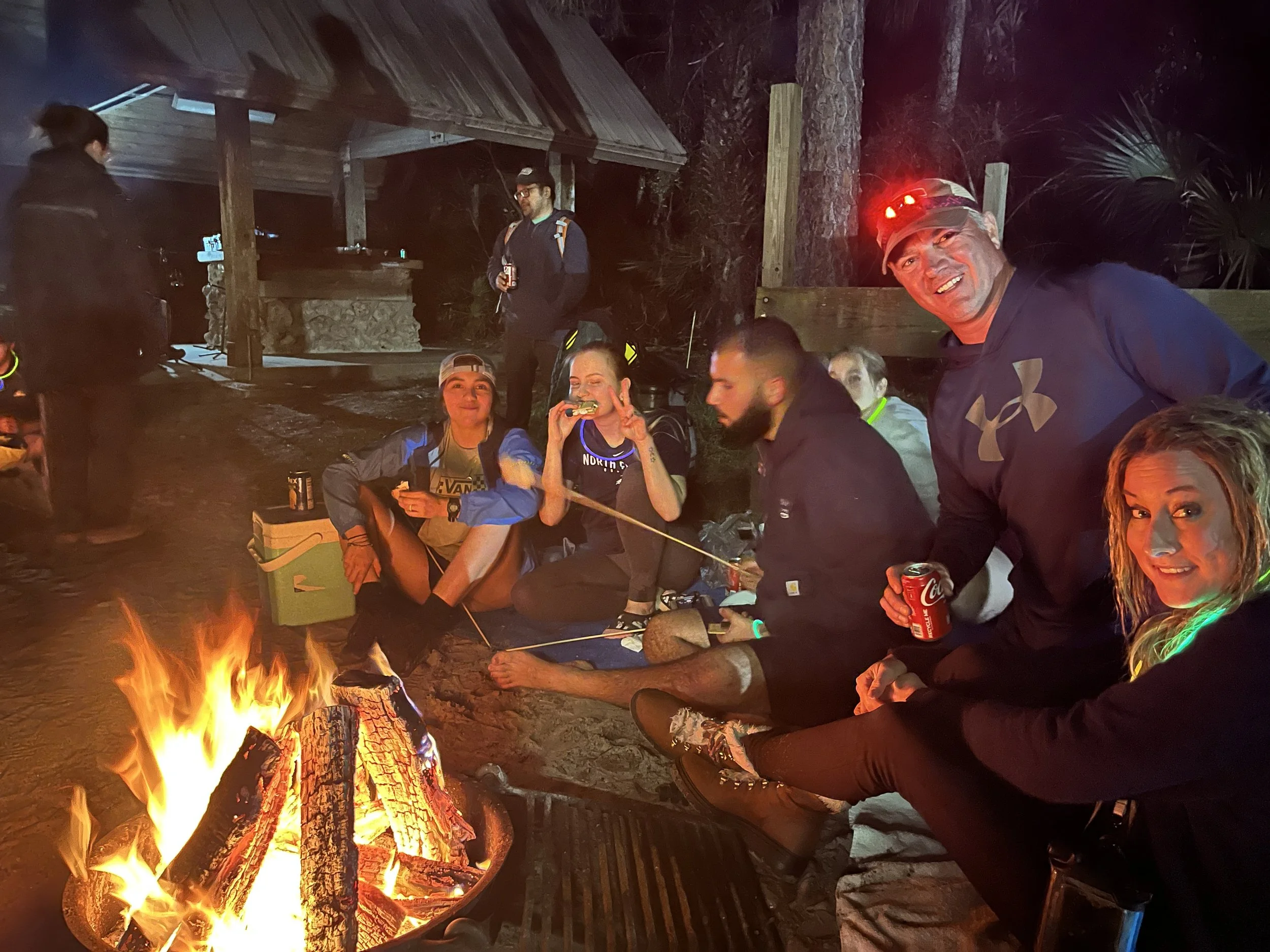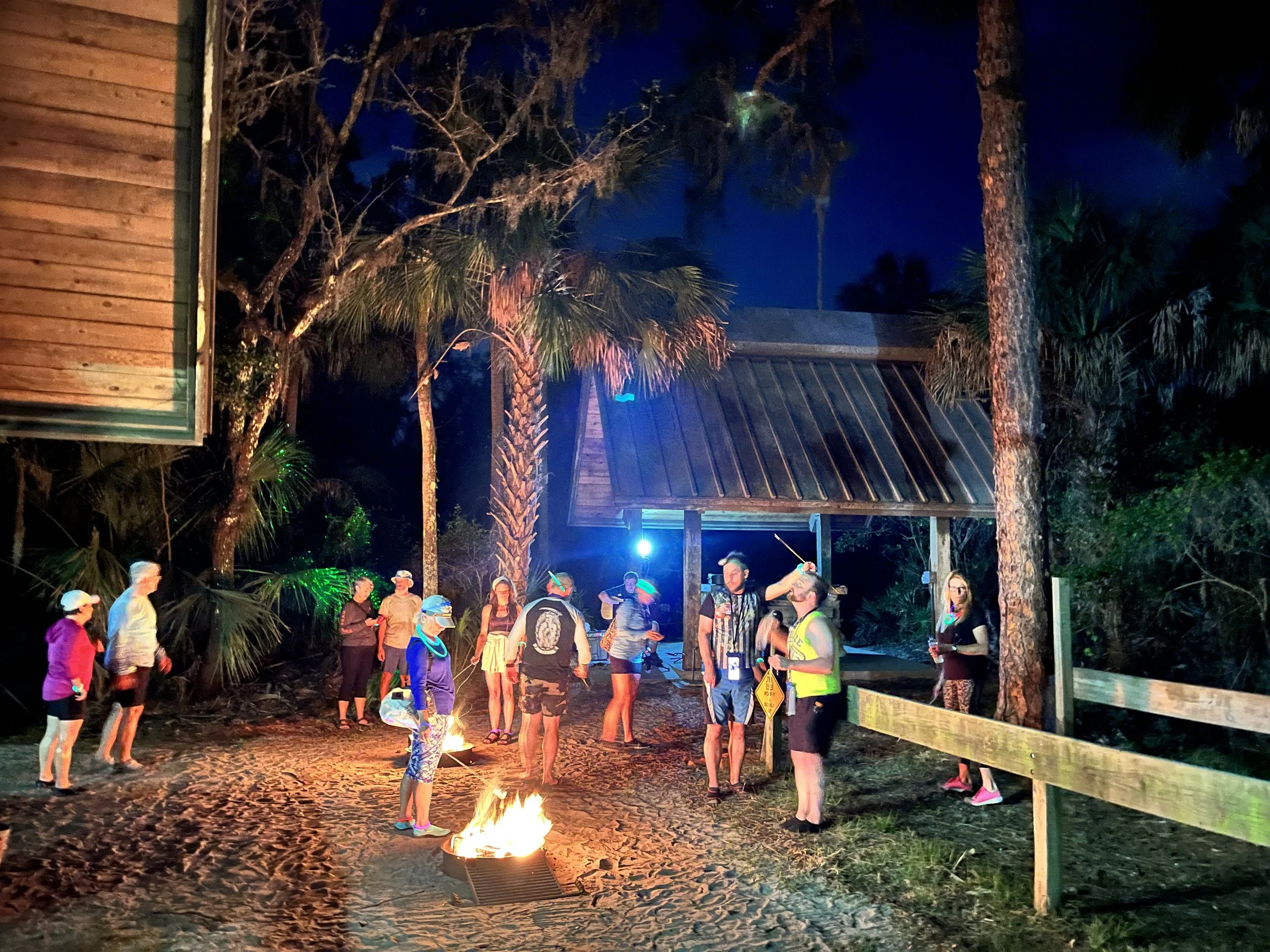 At the pavilions we have campfires, smores, often live entertainment, and a full dinner spread! Previous menus have included all you can eat pancakes, pulled pork sandwiches, homemade tortellini soup, chili dogs, and a wide variety of other entrees, as well as chips, dip, fresh fruit, and other sides to keep you fueled up for the second half of the paddle.