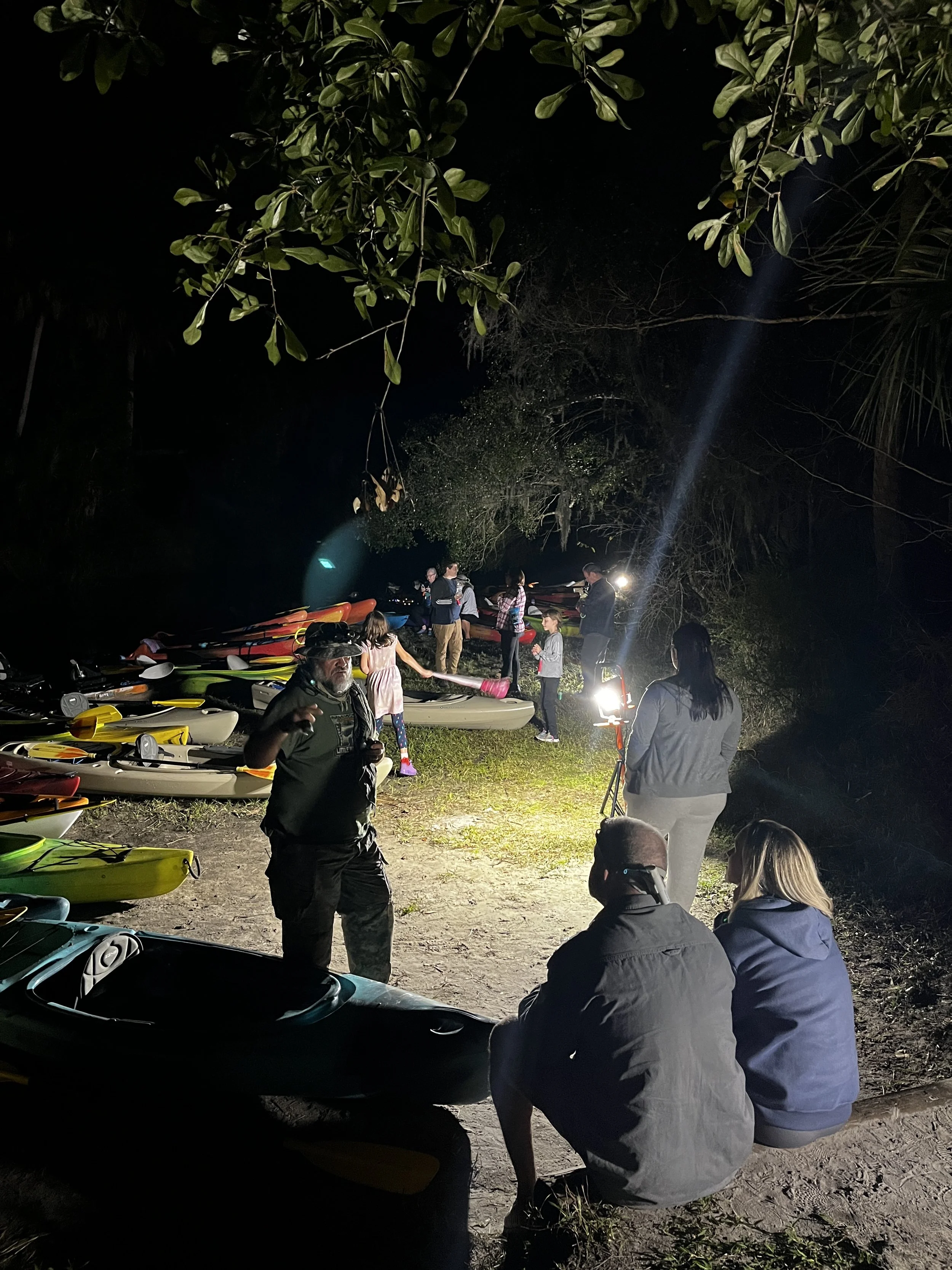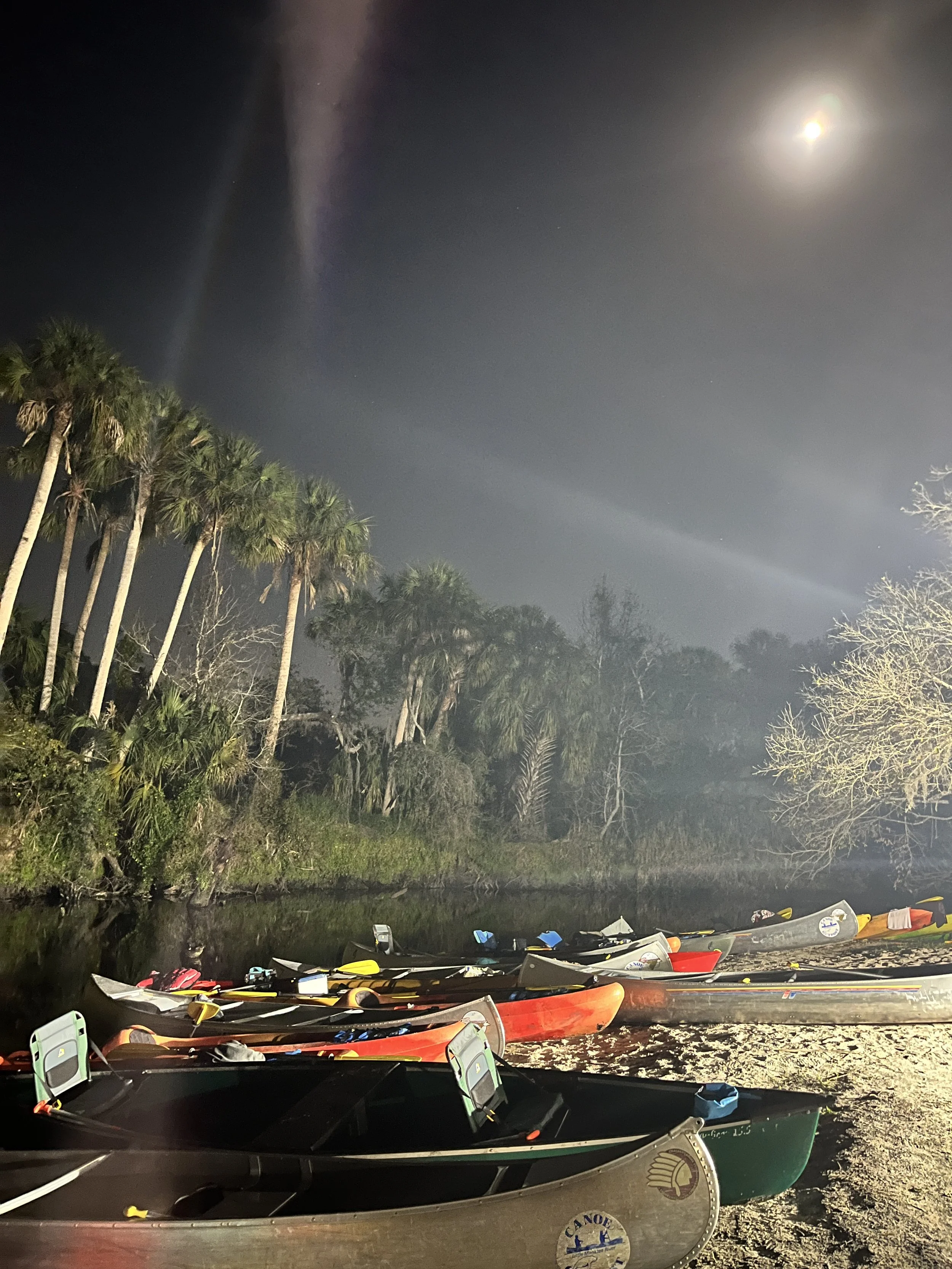 This river is narrow, and has tight turns and obstructions to navigate around, a challenge during the day but especially at night. We recommend that you have river paddling experience in general and preferably experience on our river in the daytime. A moonlight paddle is not appropriate for a first time paddle. While there will be staff along on the trip, they are mainly there to handle the boats at the middle and end of the trip. While they will assist you in any way possible, they can not be by your side at all times, and you must possess a high degree of self reliance.